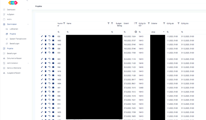 - Anzeige von Projektdetails (Budgetinformationen, PDF-Dokumente, Projekttypen)